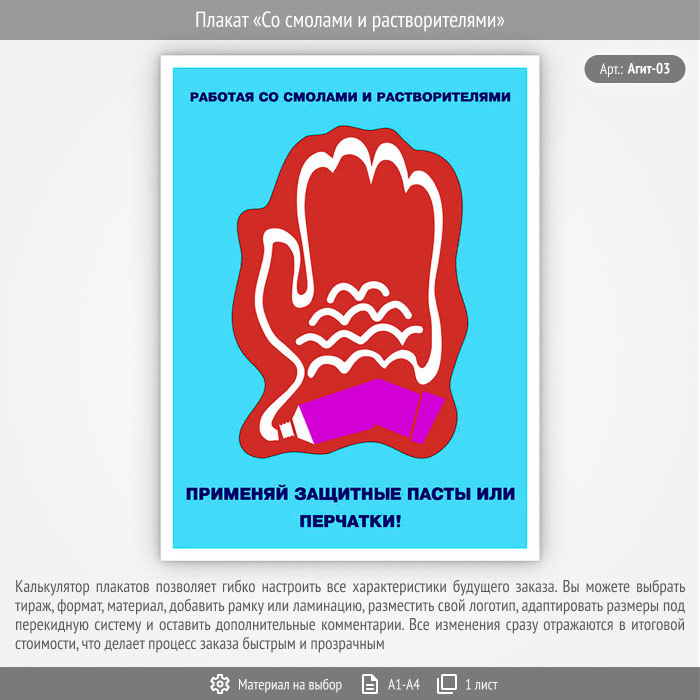 Плакат «Со смолами и растворителями» (Агит-03, 1 лист) в Магнитогорске купить