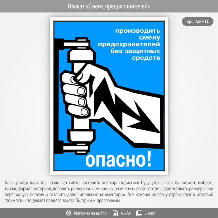 Плакат «Смена предохранителей» (Агит-11, 1 лист) в Магнитогорске купить