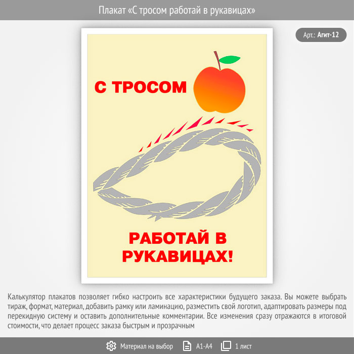 Плакат «С тросом работай в рукавицах» (Агит-12, 1 лист) в Магнитогорске купить