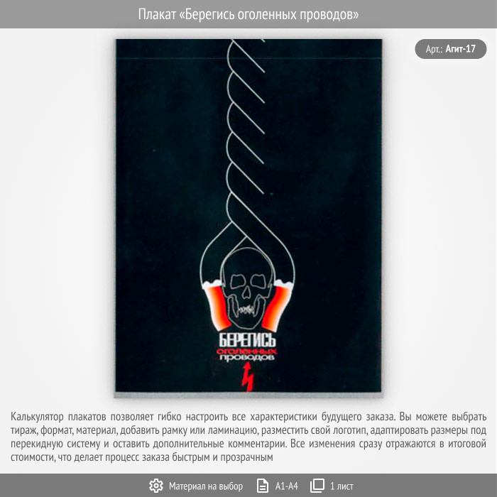 Плакат «Берегись оголенных проводов» (Агит-17, 1 лист) в Магнитогорске купить