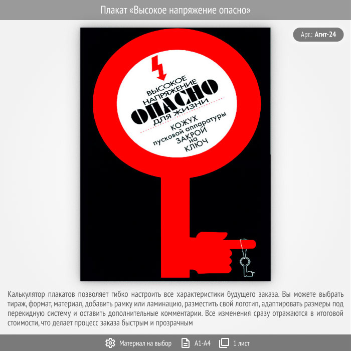 Плакат «Высокое напряжение опасно» (Агит-24, 1 лист) в Магнитогорске купить
