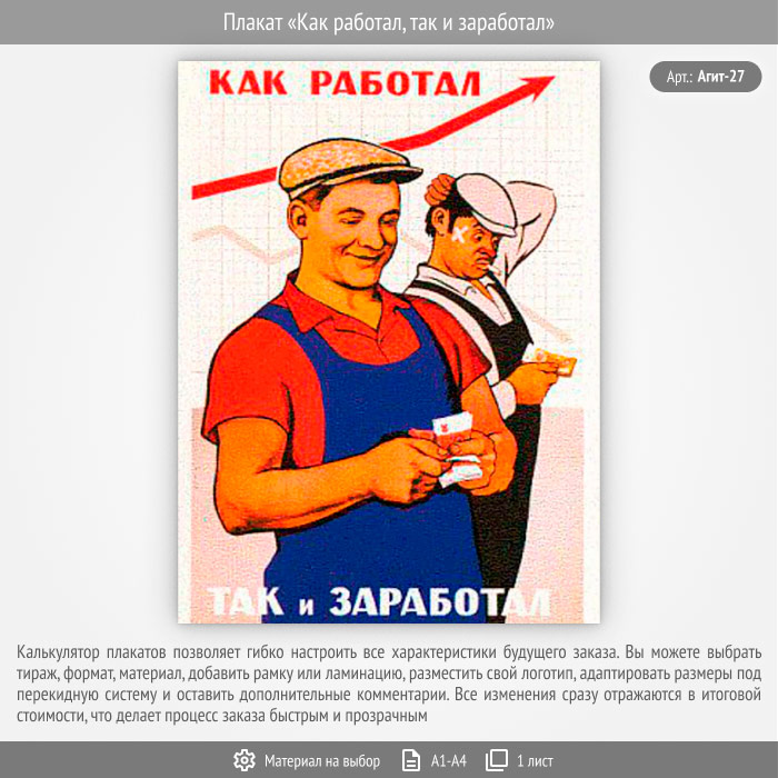 Плакат «Как работал, так и заработал» (Агит-27, 1 лист) в Магнитогорске купить