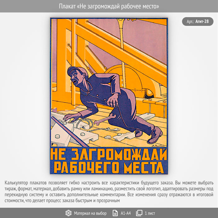 Плакат «Не загромождай рабочее место» (Агит-28, 1 лист) в Магнитогорске купить