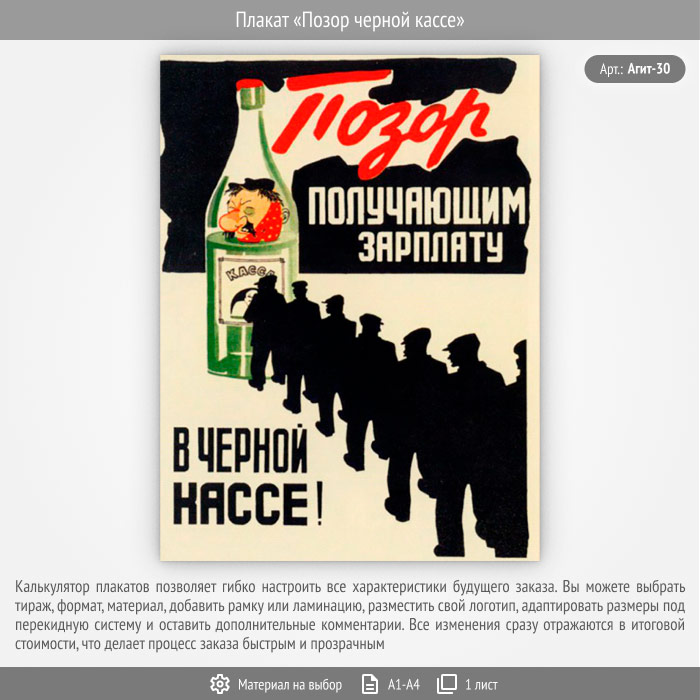 Плакат «Позор черной кассе» (Агит-30, 1 лист) в Магнитогорске купить