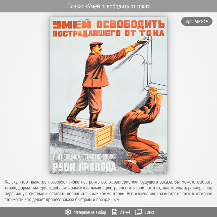 Плакат «Умей освободить от тока» (Агит-34, 1 лист) в Магнитогорске купить