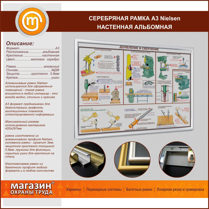 Багетная настенная рамка «Nielsen» А3 формата, альбомная, матовое серебро в Магнитогорске купить
