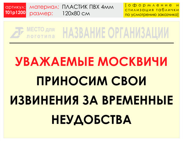 Баннер «Извинения», T01 (пластик 4 мм, 120х90 см) в Магнитогорске купить