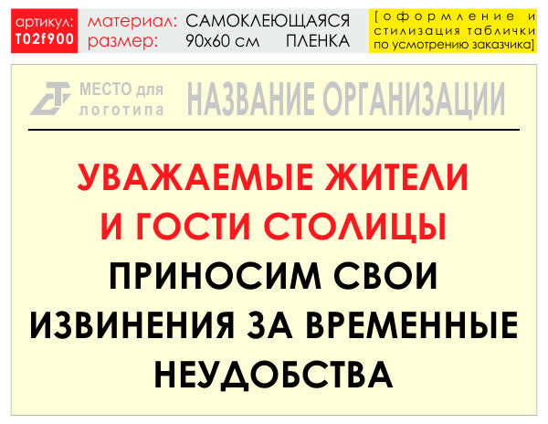 Баннер «Извинения», T02 (самоклеящаяся плёнка, 90х60 см) в Магнитогорске купить