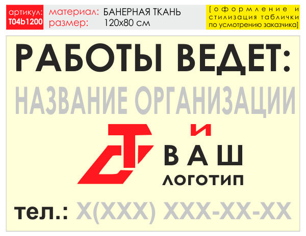 Баннер «Работы ведет», T04 (баннерная ткань, 120х90 см) в Магнитогорске купить