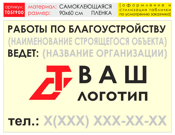 Баннер «Работы по благоустройству», T05 (самоклеящаяся плёнка, 90х60 см) в Магнитогорске купить