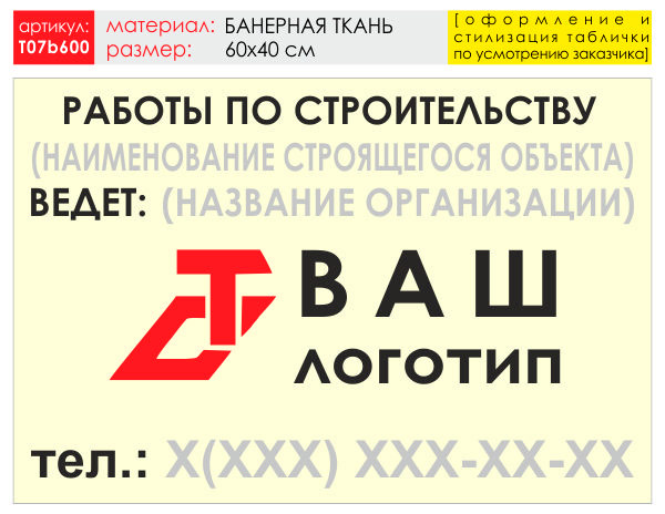 Баннер «Работы по строительству», T07 (баннерная ткань, 60х40 см) в Магнитогорске купить