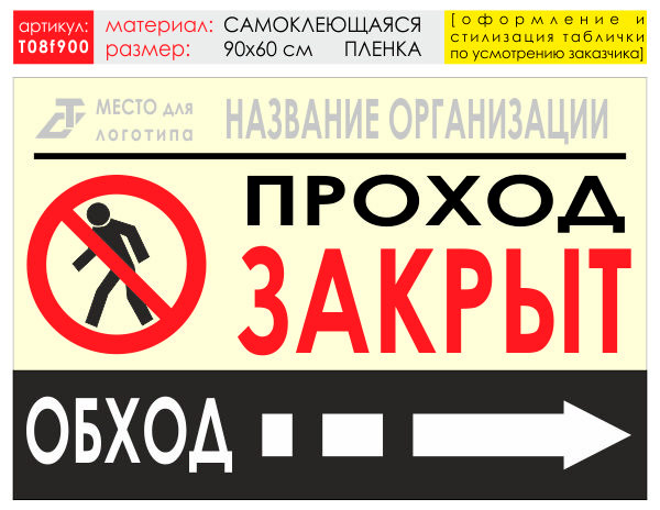 Баннер «Обход справа», T08 (самоклеящаяся плёнка, 90х60 см) в Магнитогорске купить