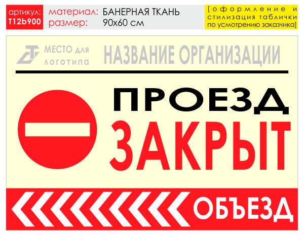 Баннер «Объезд слева», T12 (баннерная ткань, 90х60 см) в Магнитогорске купить