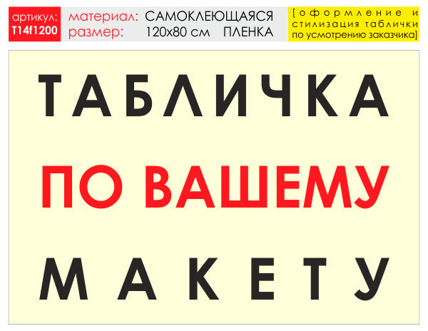 Баннер «Табличка по Вашему макету», T14 (самоклеящаяся плёнка, 120х90 см) в Магнитогорске купить