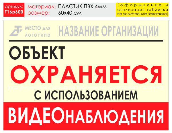 Баннер «Объект охраняется», T16 (пластик 4 мм, 60х40 см) в Магнитогорске купить