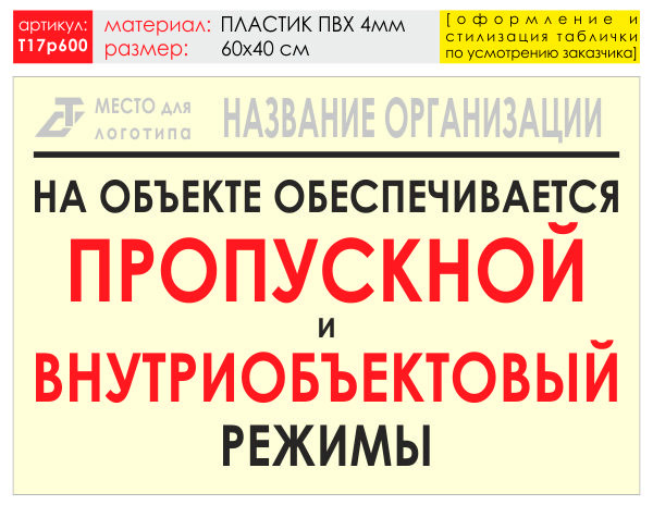 Баннер «Режим», T17 (пластик 4 мм, 60х40 см) в Магнитогорске купить