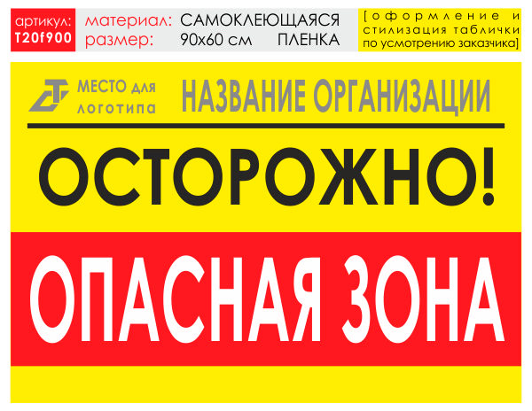 Баннер «Опасная зона», T20 (самоклеящаяся плёнка, 90х60 см) в Магнитогорске купить