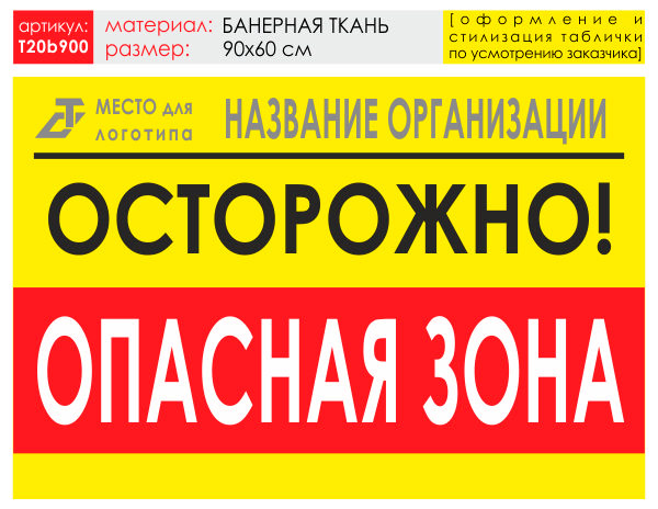 Баннер «Опасная зона», T20 (баннерная ткань, 90х60 см) в Магнитогорске купить