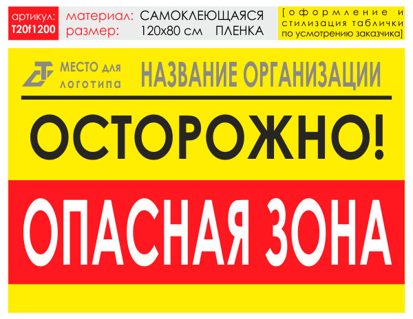 Баннер «Опасная зона», T20 (самоклеящаяся плёнка, 120х90 см) в Магнитогорске купить