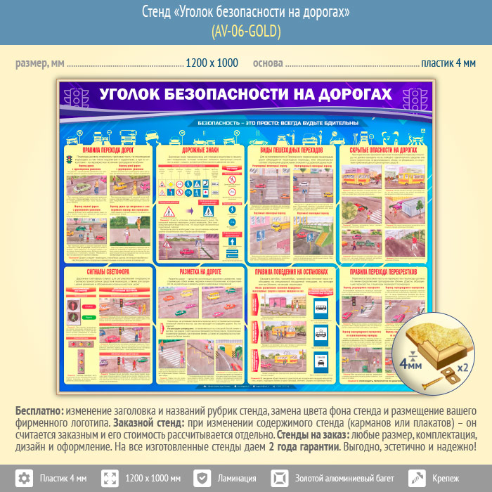 Стенд «Уголок безопасности на дорогах» (AV-06-GOLD) в Магнитогорске купить