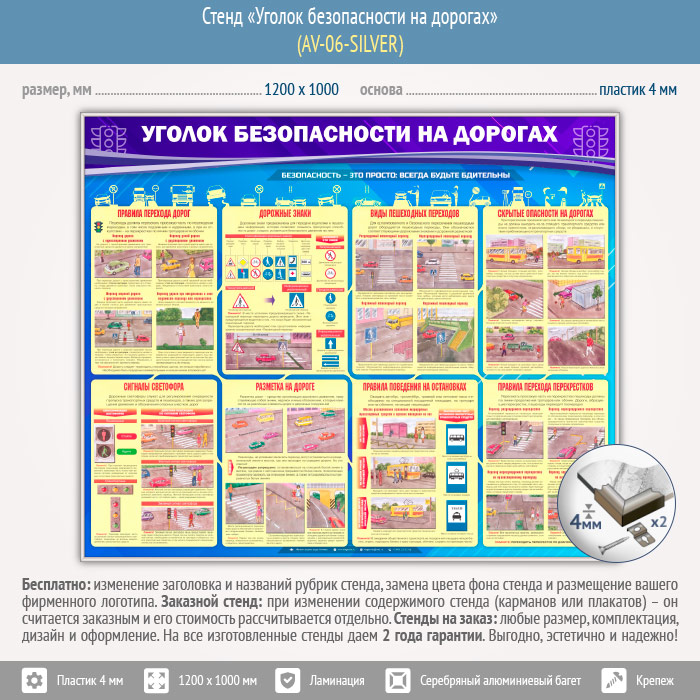Стенд «Уголок безопасности на дорогах» (AV-06-SILVER) в Магнитогорске купить