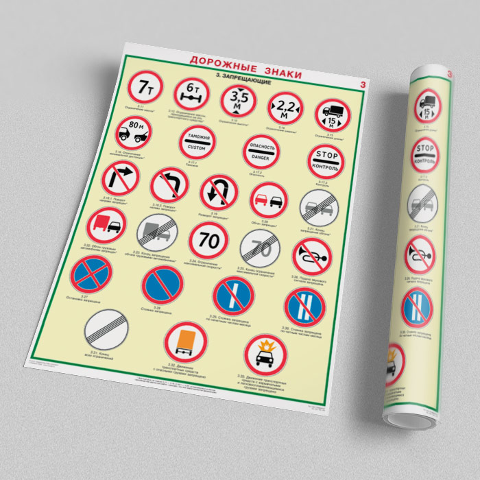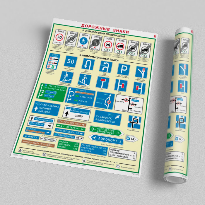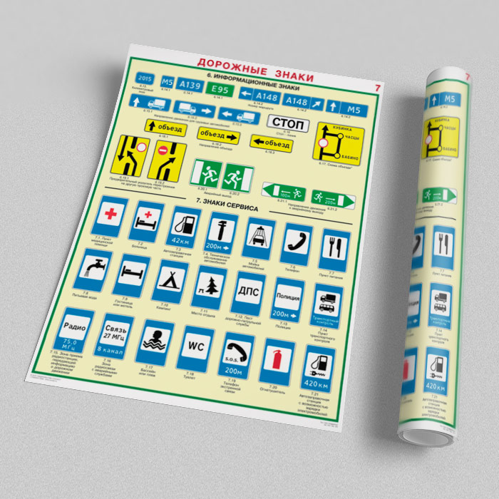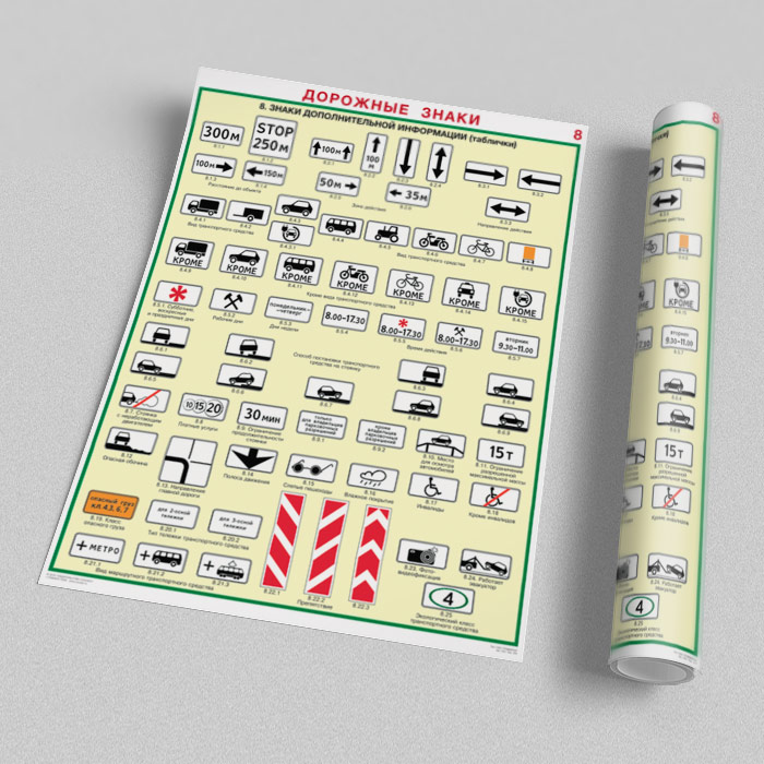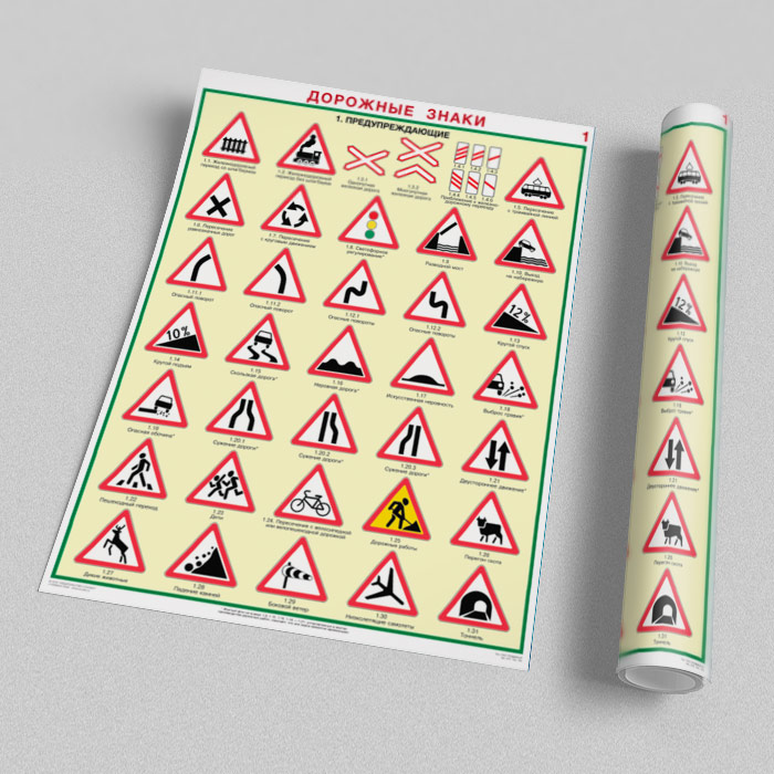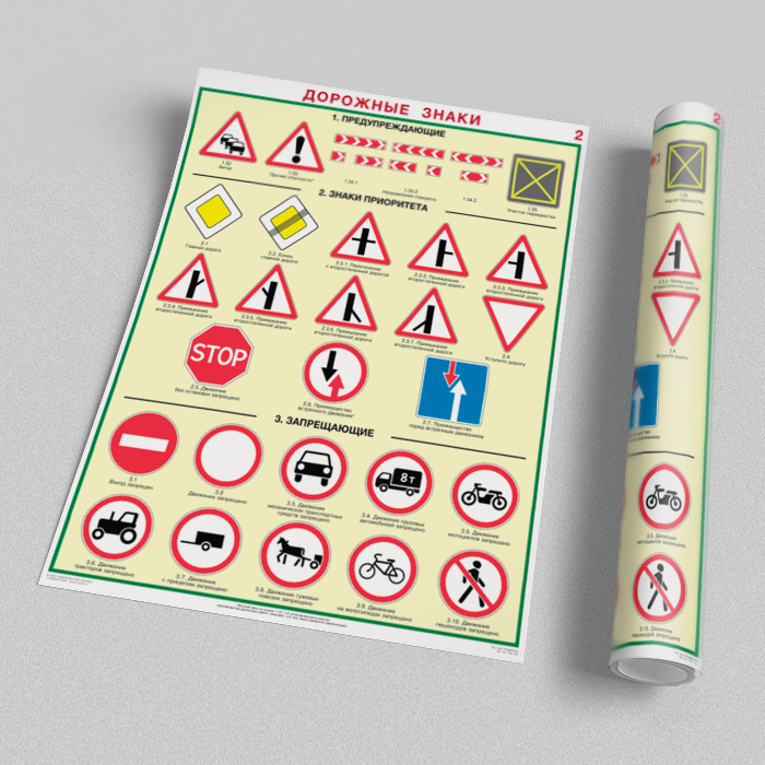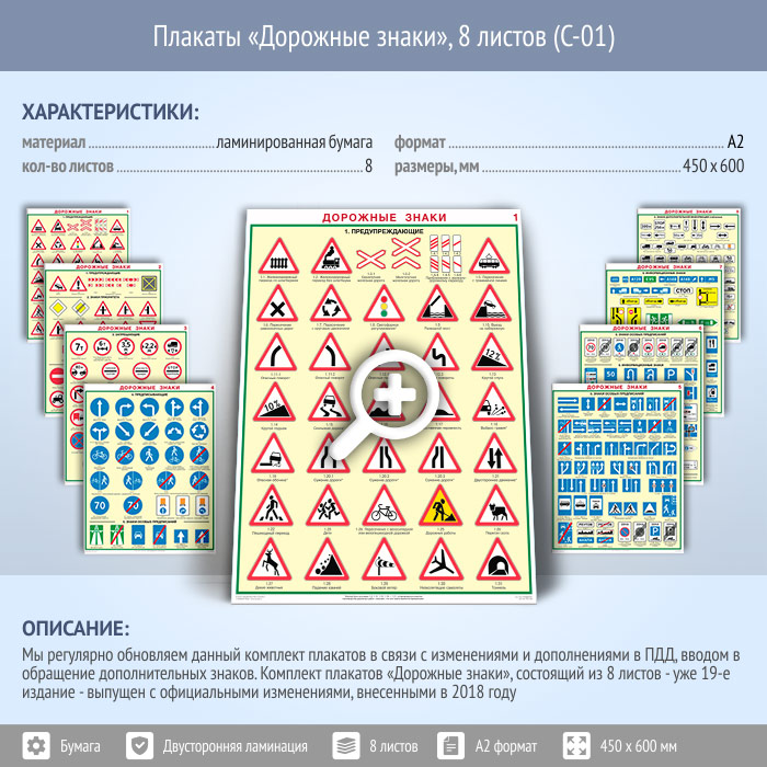 Плакаты «Дорожные знаки» (С-01, ламинированная бумага, А2, 8 листов) в Магнитогорске купить