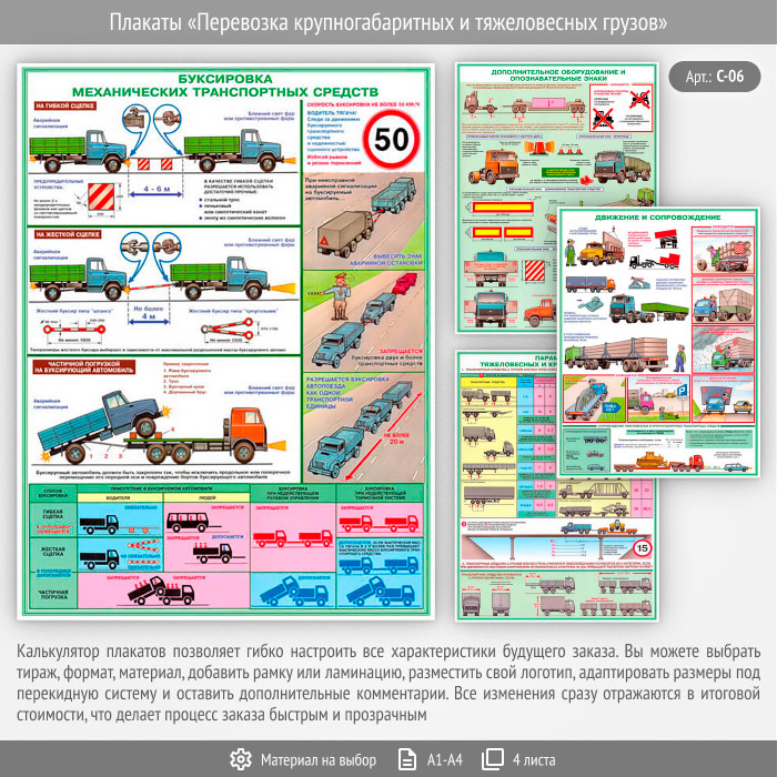Плакаты «Перевозка крупногабаритных и тяжеловесных грузов» (С-06, 4 листа) в Магнитогорске купить