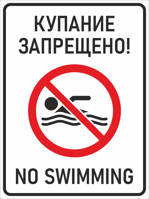 Знак «Купание запрещено! / No swimming», БВ-13 (металл, 400х600 мм) в Магнитогорске купить