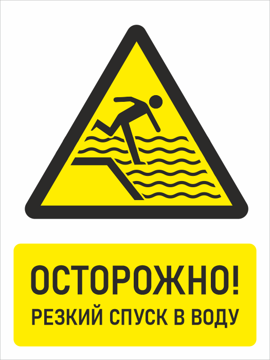 Знак «Осторожно! Резкий спуск в воду», БВ-32 (пленка, 400х600 мм) в Магнитогорске купить
