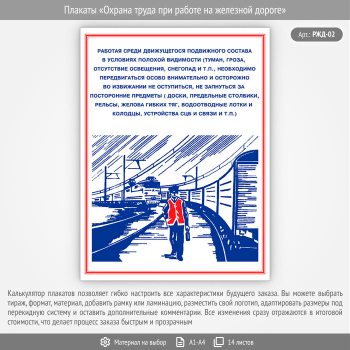 Плакаты «Охрана труда при работе на железной дороге» (РЖД-02, 14 листов) в Магнитогорске купить