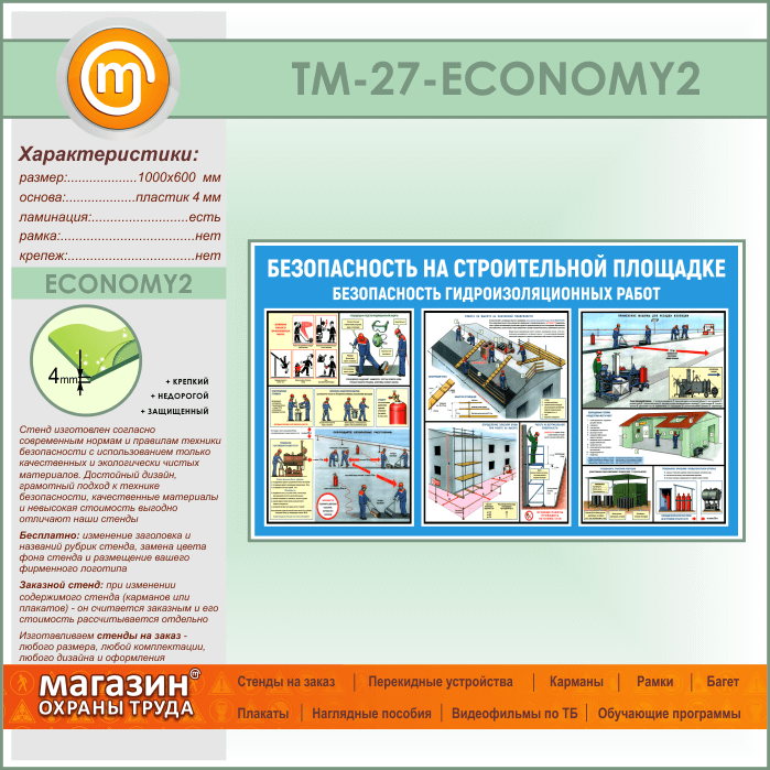 Стенд «Безопасность на строительной площадке. Безопасность гидроизоляционных работ» (TM-27-ECONOMY2) в Магнитогорске купить