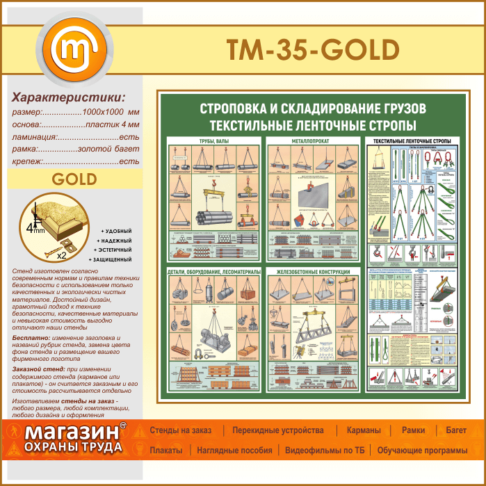 Стенд «Строповка и складирование грузов. Текстильные ленточные стропы» (TM-35-GOLD) в Магнитогорске купить