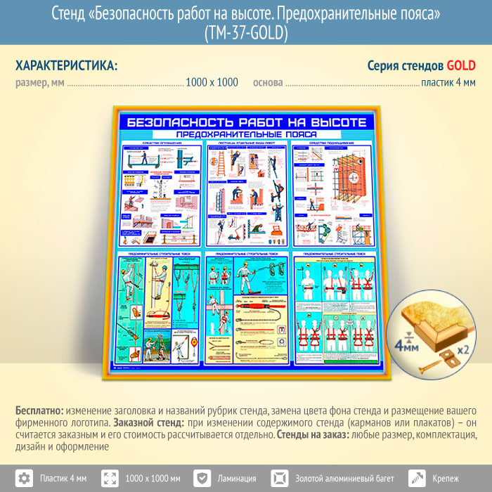 Стенд «Безопасность работ на высоте. Предохранительные пояса» (TM-37-GOLD) в Магнитогорске купить