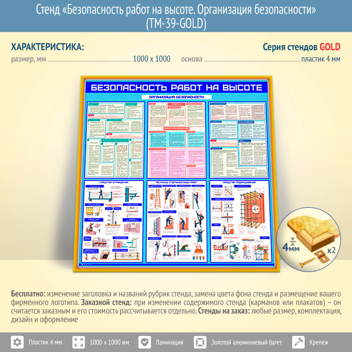 Стенд «Безопасность работ на высоте. Организация безопасности» (TM-39-GOLD) в Магнитогорске купить
