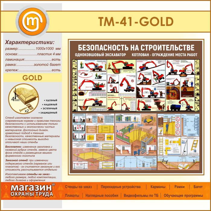 Стенд «Безопасность земляных работ. Экскаватор, котлован» (TM-41-GOLD) в Магнитогорске купить