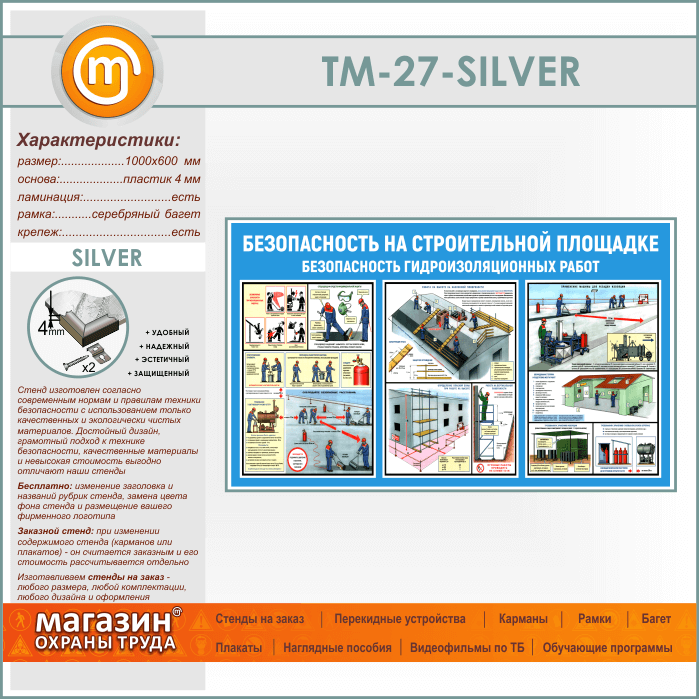 Стенд «Безопасность на строительной площадке. Безопасность гидроизоляционных работ» (TM-27-SILVER) в Магнитогорске купить
