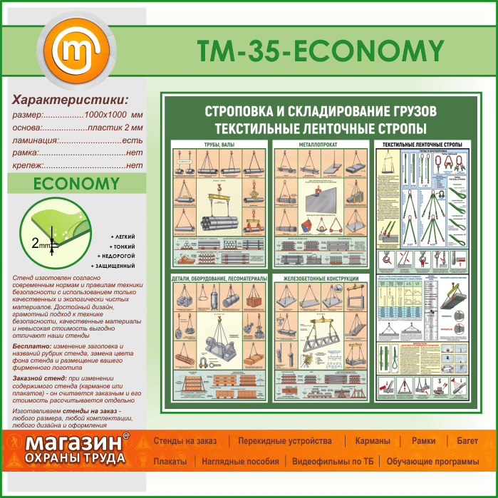 Стенд «Строповка и складирование грузов. Текстильные ленточные стропы» (TM-35-ECONOMY) в Магнитогорске купить