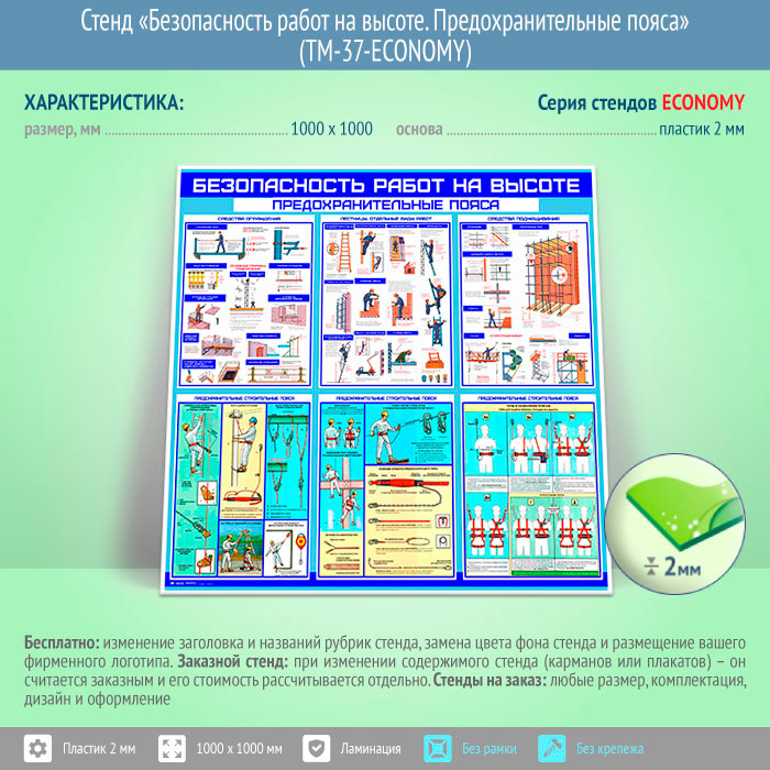 Стенд «Безопасность работ на высоте. Предохранительные пояса» (TM-37-ECONOMY) в Магнитогорске купить
