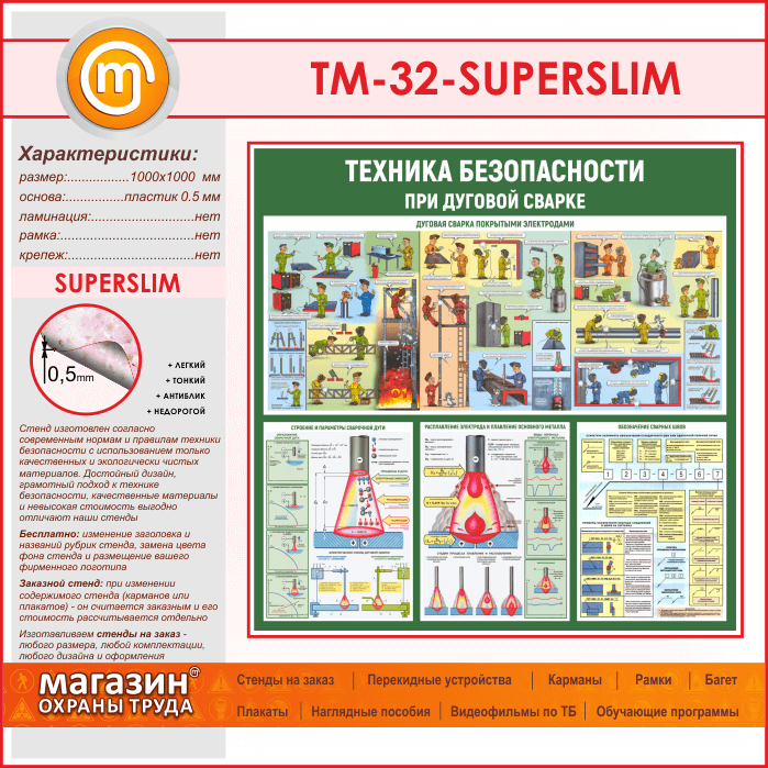 Стенд «Техника безопасности при дуговой сварке» (TM-32-SUPERSLIM) в Магнитогорске купить