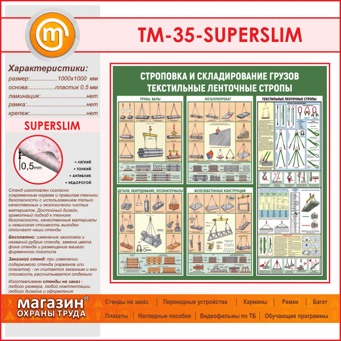 Стенд «Строповка и складирование грузов. Текстильные ленточные стропы» (TM-35-SUPERSLIM) в Магнитогорске купить