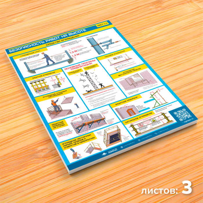 Плакаты «Безопасность работ на высоте» (М-52, ламинированная бумага, А2, 3 листа) в Магнитогорске купить