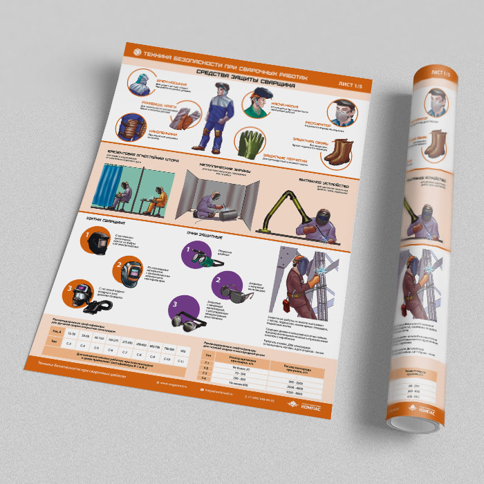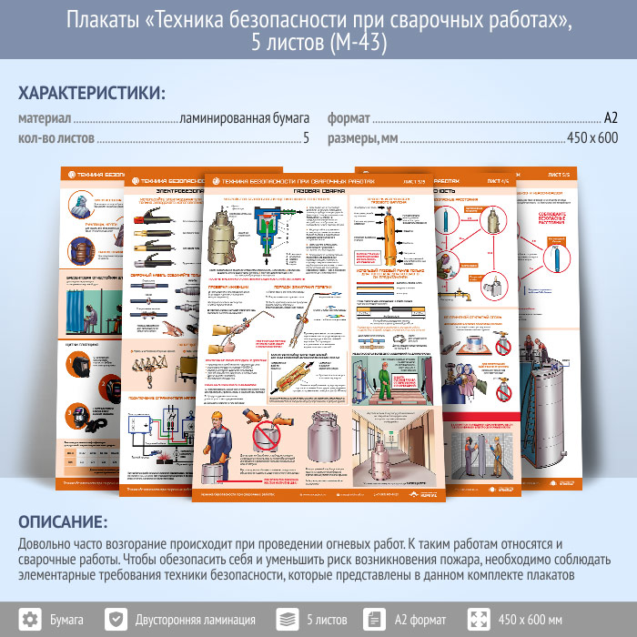 Плакаты «Техника безопасности при сварочных работах» (М-43, ламинированная бумага, А2, 5 листов) в Магнитогорске купить