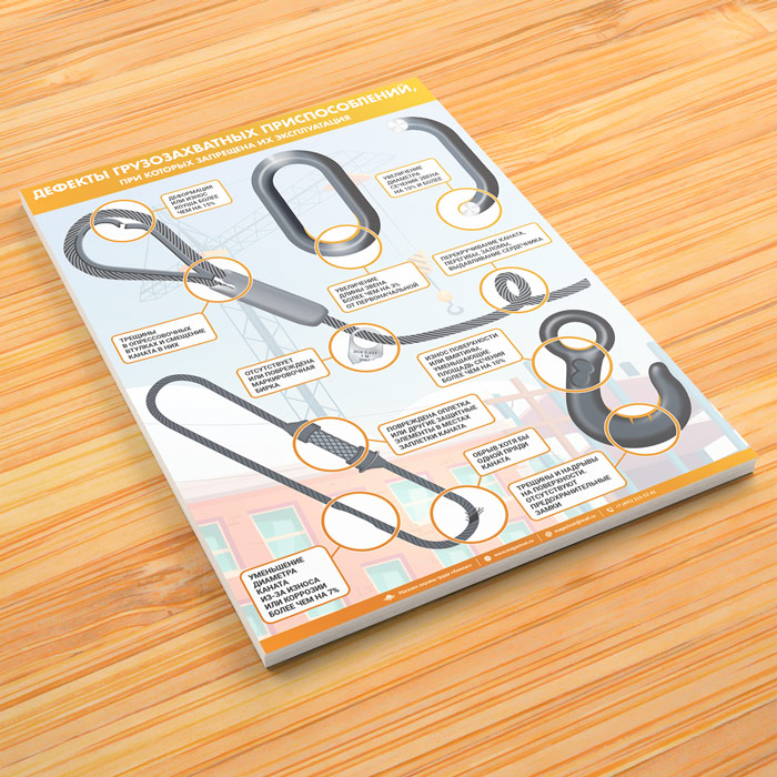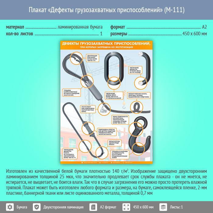 Плакат «Дефекты грузозахватных приспособлений» (М-111, ламинированная бумага, А2, 1 лист) в Магнитогорске купить