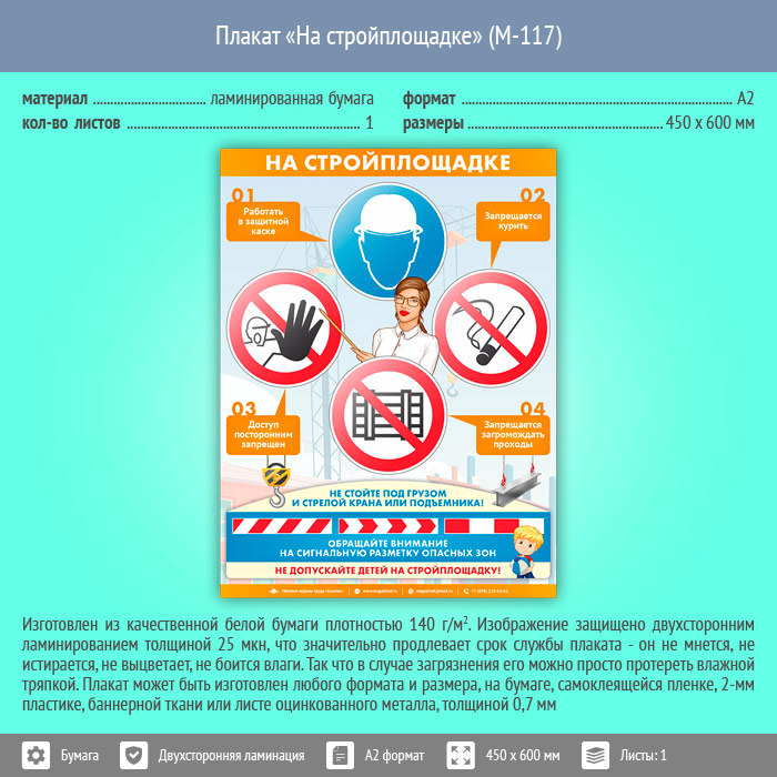 Плакат «На стройплощадке» (М-117, ламинированная бумага, А2, 1 лист) в Магнитогорске купить