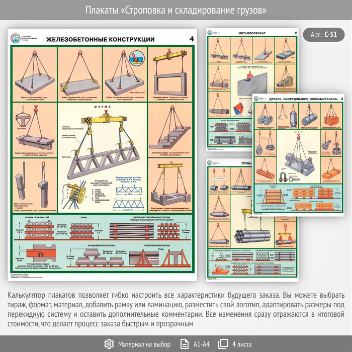 Плакаты «Строповка и складирование грузов» (С-51, 4 листа) в Магнитогорске купить