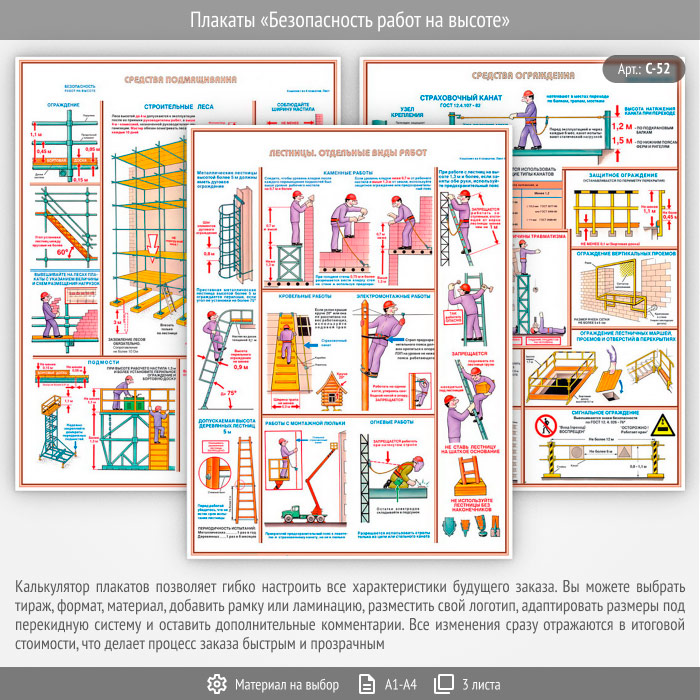 Плакаты «Безопасность работ на высоте» (С-52, 3 листа) в Магнитогорске купить