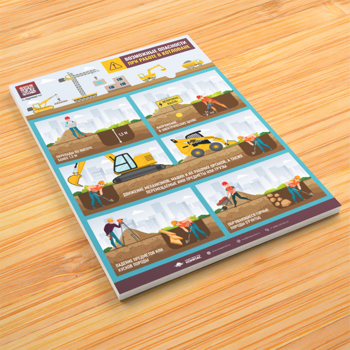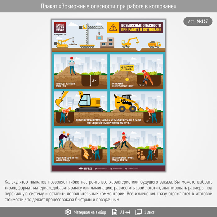 Плакат «Возможные опасности при работе в котловане» с QR (М-137, 1 лист) в Магнитогорске купить