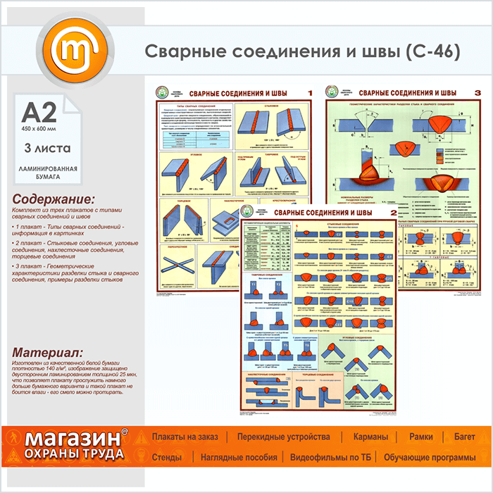 Плакаты «Сварные соединения и швы» (С-46, ламинированная бумага, А2, 3 листа) в Магнитогорске купить