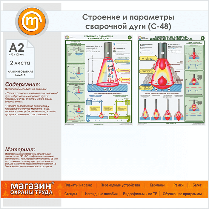Плакаты «Строение и параметры сварочной дуги» (С-48, ламинированная бумага, А2, 2 листа) в Магнитогорске купить