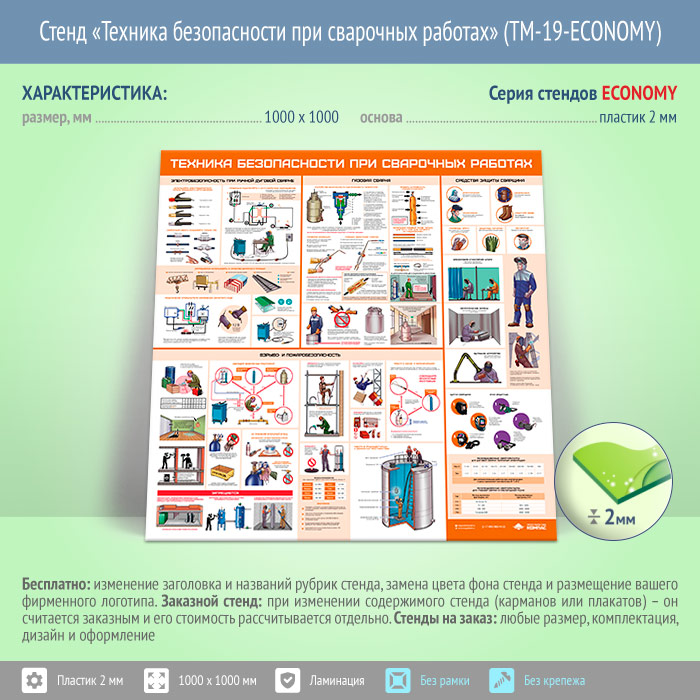 Стенд «Техника безопасности при сварочных работах» (TM-19-ECONOMY) в Магнитогорске купить
